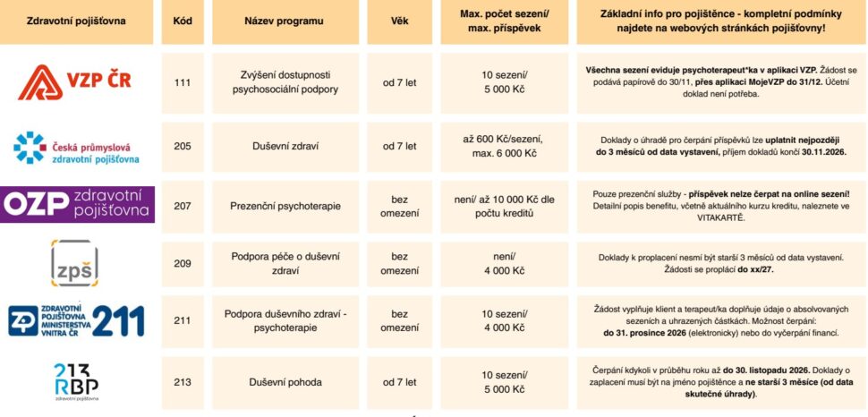 Přehled příspěvků zdravotních pojišťoven na terapii 2026